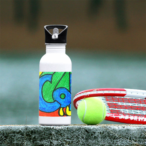 Keep hydrated in style! Stainless steel bottle with flip up straw spout. BPA Free. Hand wash to preserve color for years. Dishwasher acts as a sandblaster, etching away image over time. HORIZONTAL ART - One large image across front. VERTICAL ART - one image on each side. Size: 600 mL