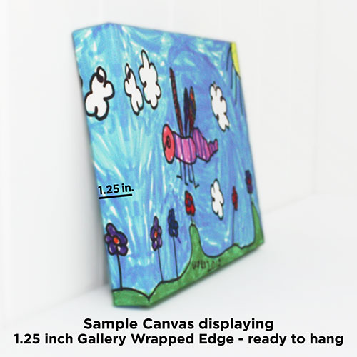 Small size: 8"x10". Gallery wrapped, heavy canvas fabric hand stretched onto SFI locally sourced solid wood frame. Art image mirror wrapped around canvas edge 1.25" in depth. Canvas is ready for hanging on wall. No frame needed.