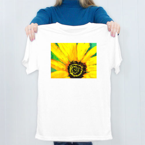 Wear your child's art wherever you go with our white T-shirt! 100% Polyester. Image won't crack or fade. Holds up well with machine washing. Size may run small - order size up if unsure. Sm(34-36), Med(38-40), Lg(42-44), XL(46-48) XXL(50-52)